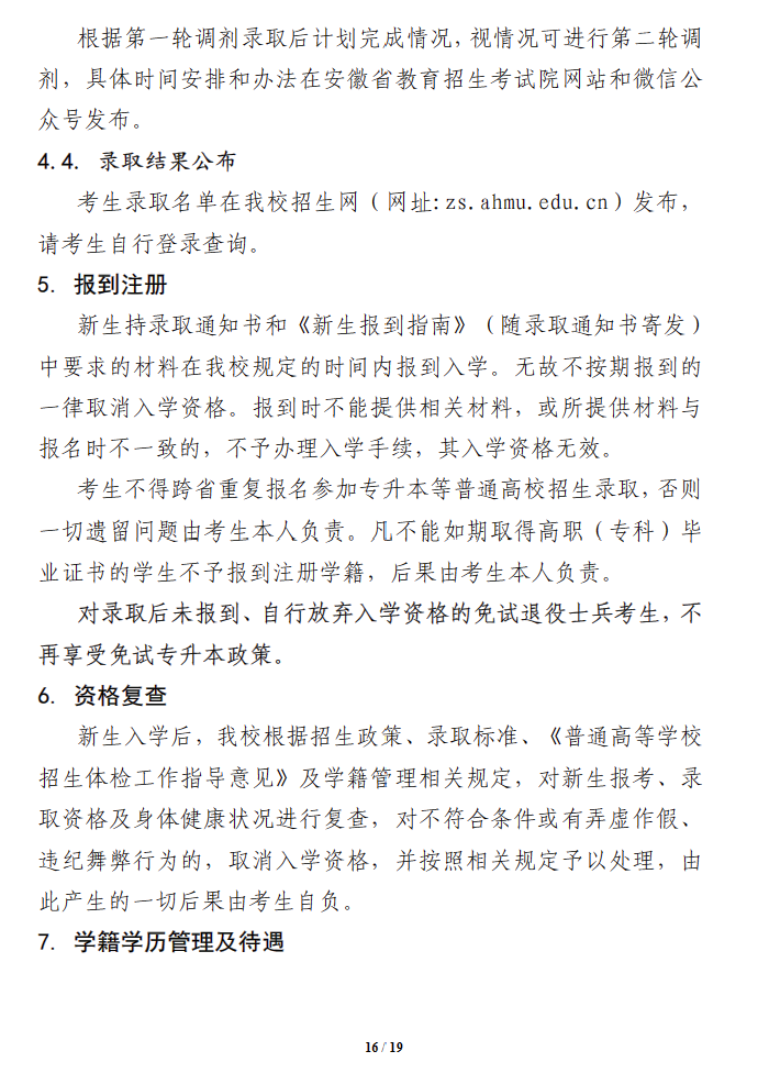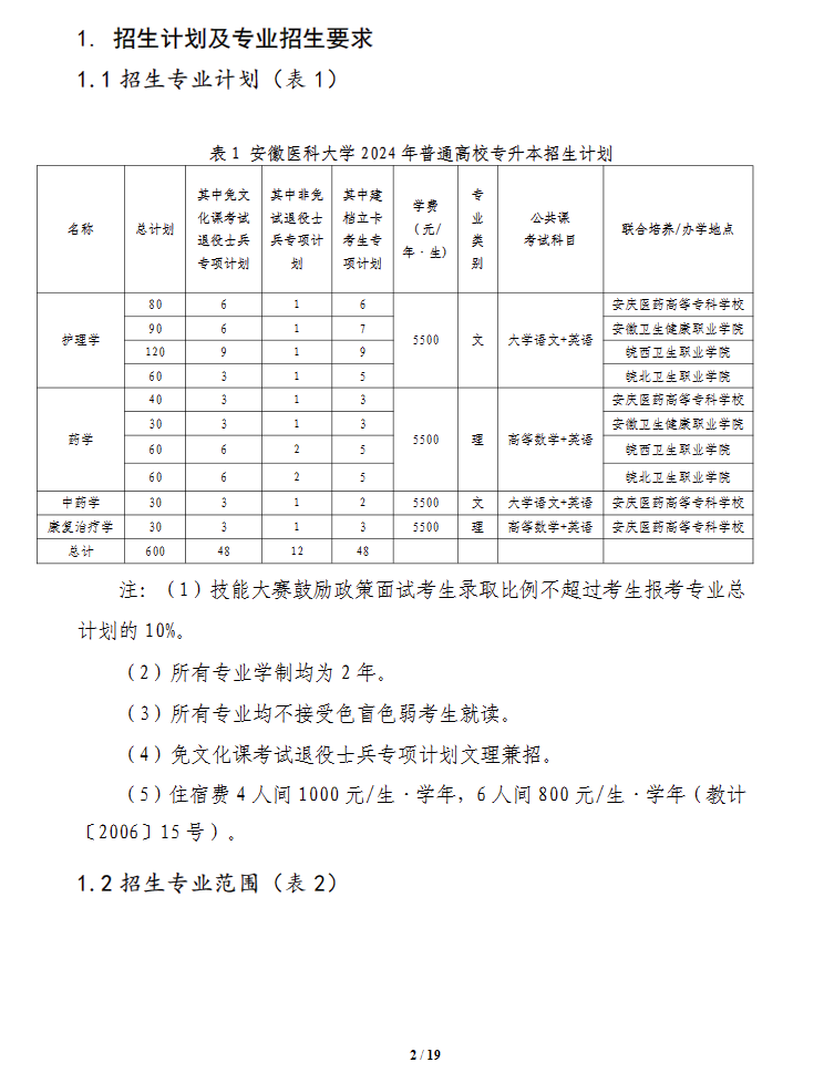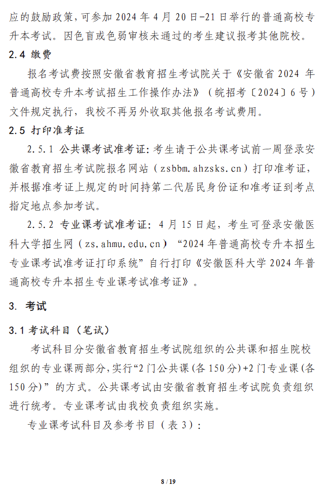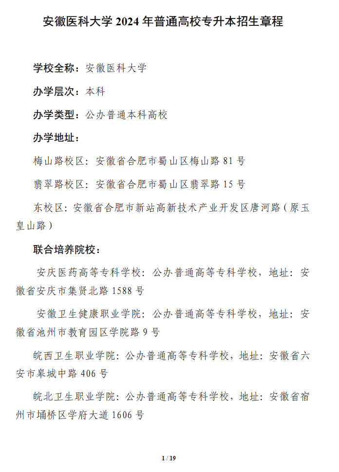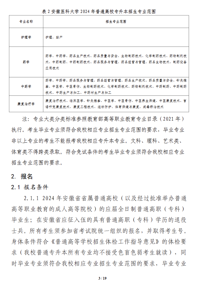 2024年安徽医科大学专升本招生章程已公布,招生章程中介绍了招生计划及专业招生要求、考试、录取、报到注册、资格复查、资助政策等重要内容。