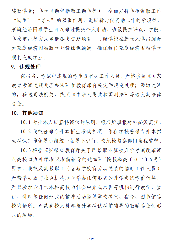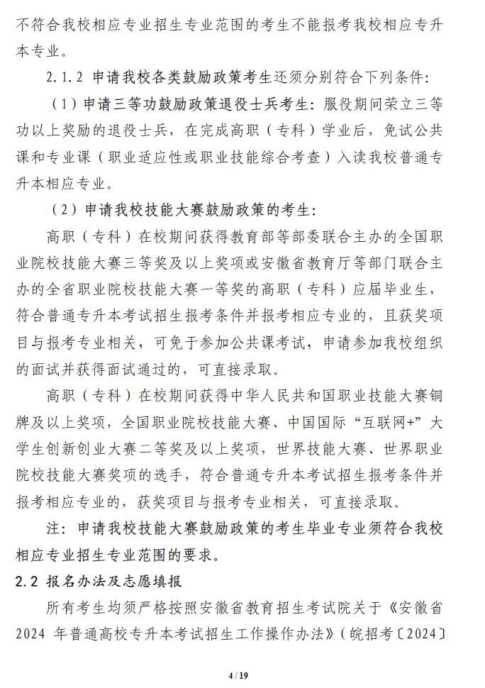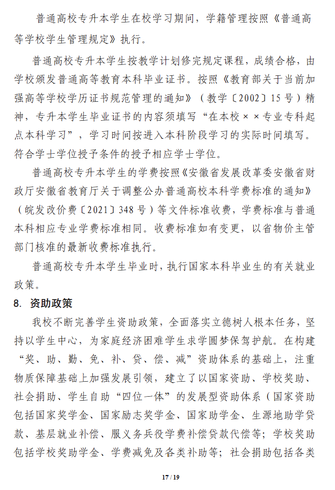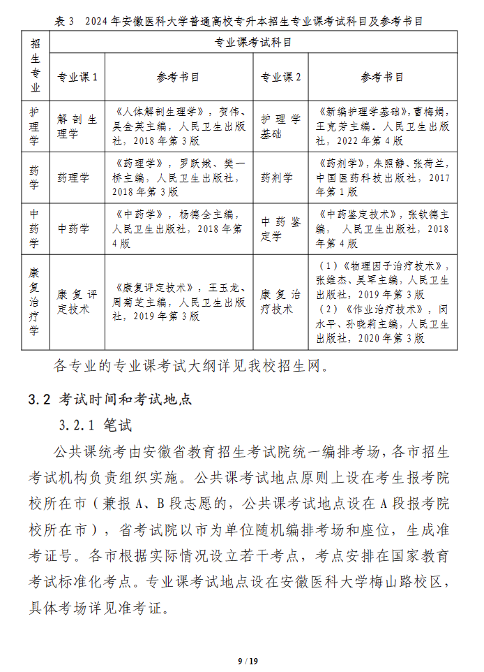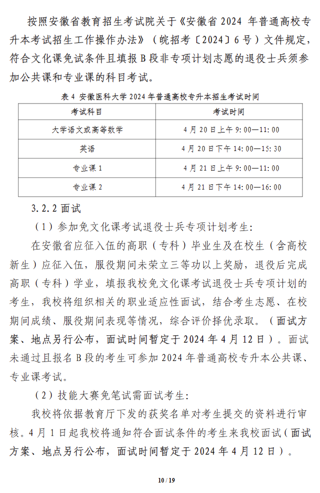 2024年安徽医科大学专升本招生章程已公布,招生章程中介绍了招生计划及专业招生要求、考试、录取、报到注册、资格复查、资助政策等重要内容。