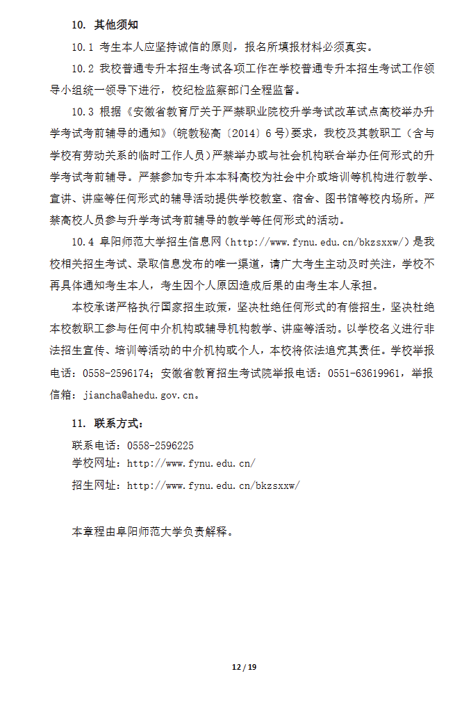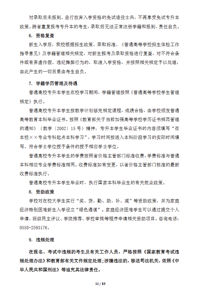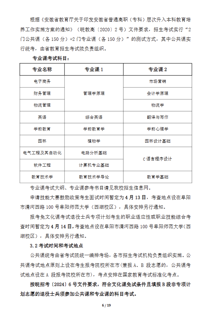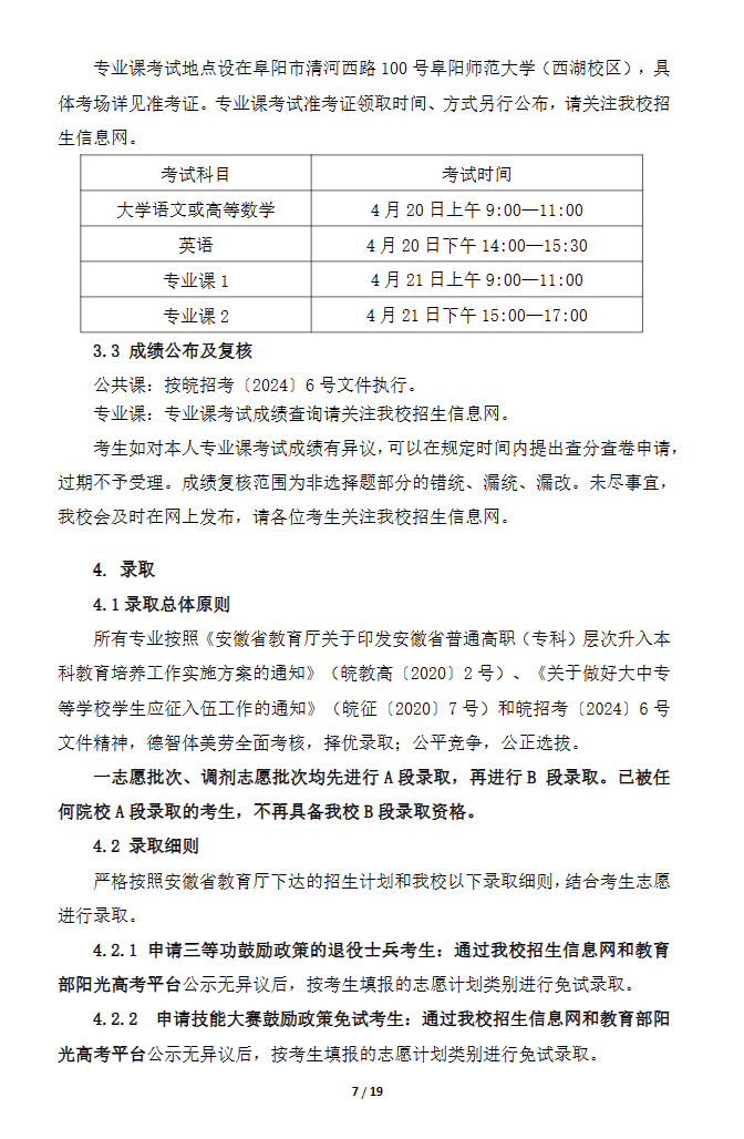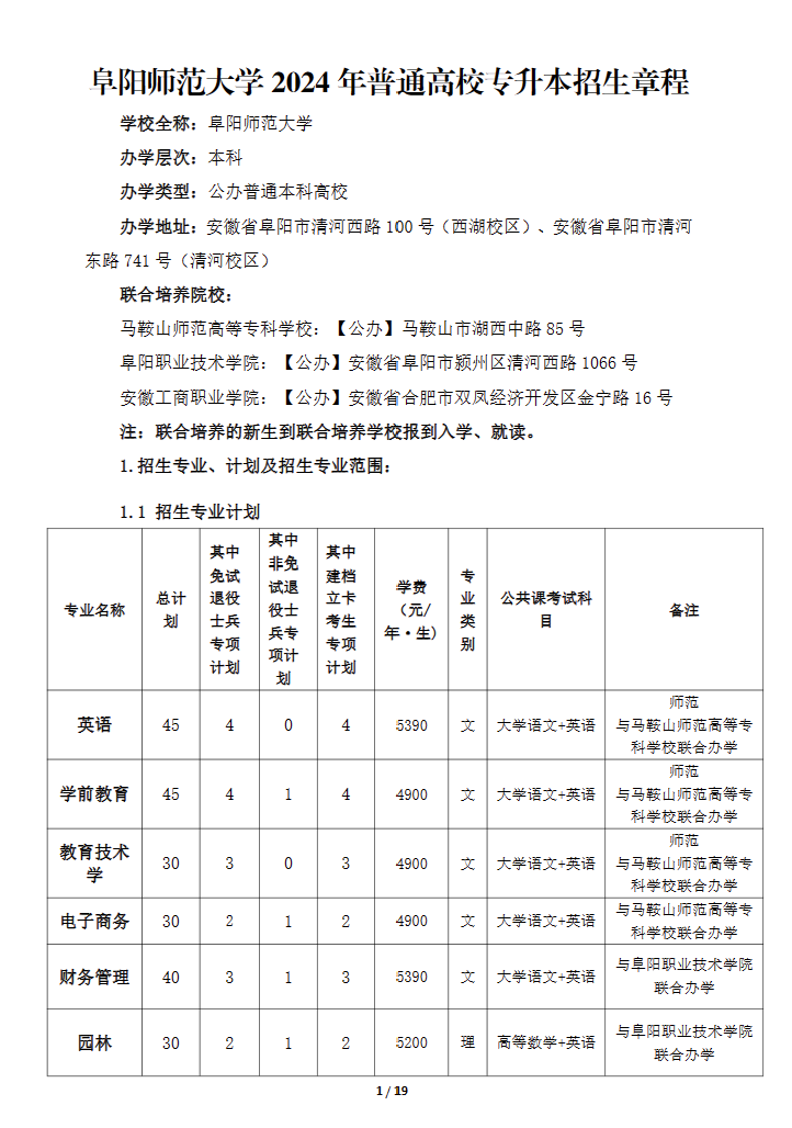 2024年阜阳师范大学专升本招生章程已公布,招生章程中介绍了招生计划及专业招生要求、考试、录取、报到注册、资格复查、资助政策等重要内容。