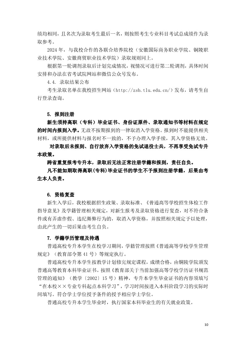 2024年铜陵学院专升本招生章程已公布,招生章程中介绍了招生计划及专业招生要求、考试、录取、报到注册、资格复查、资助政策等重要内容。