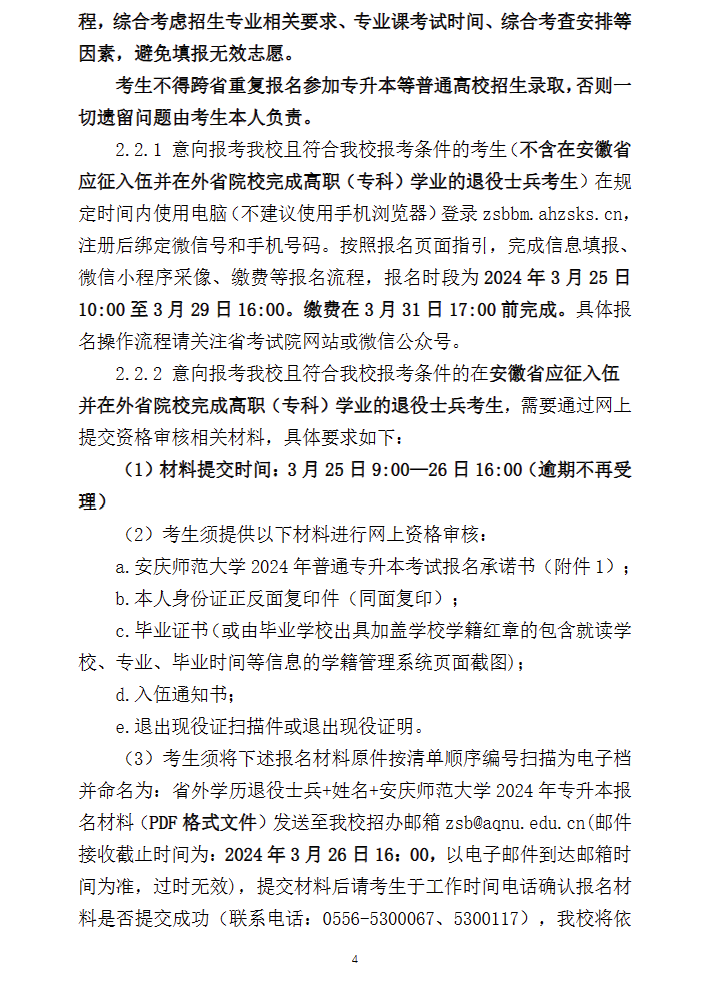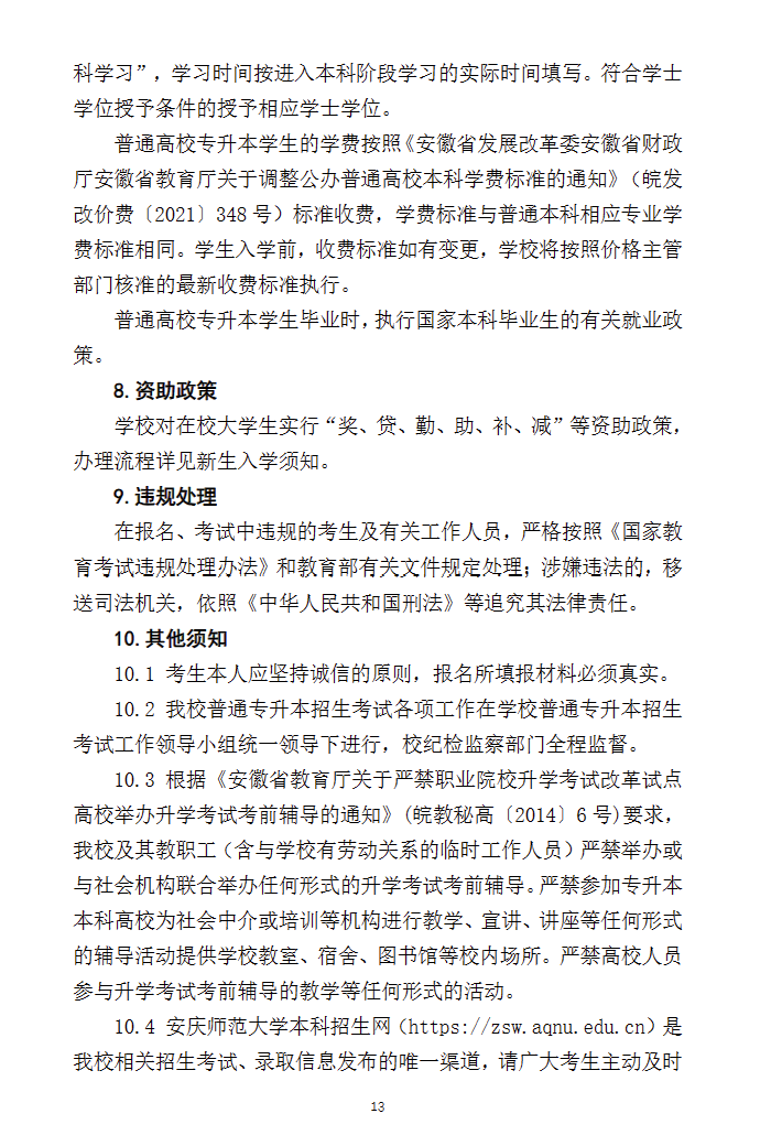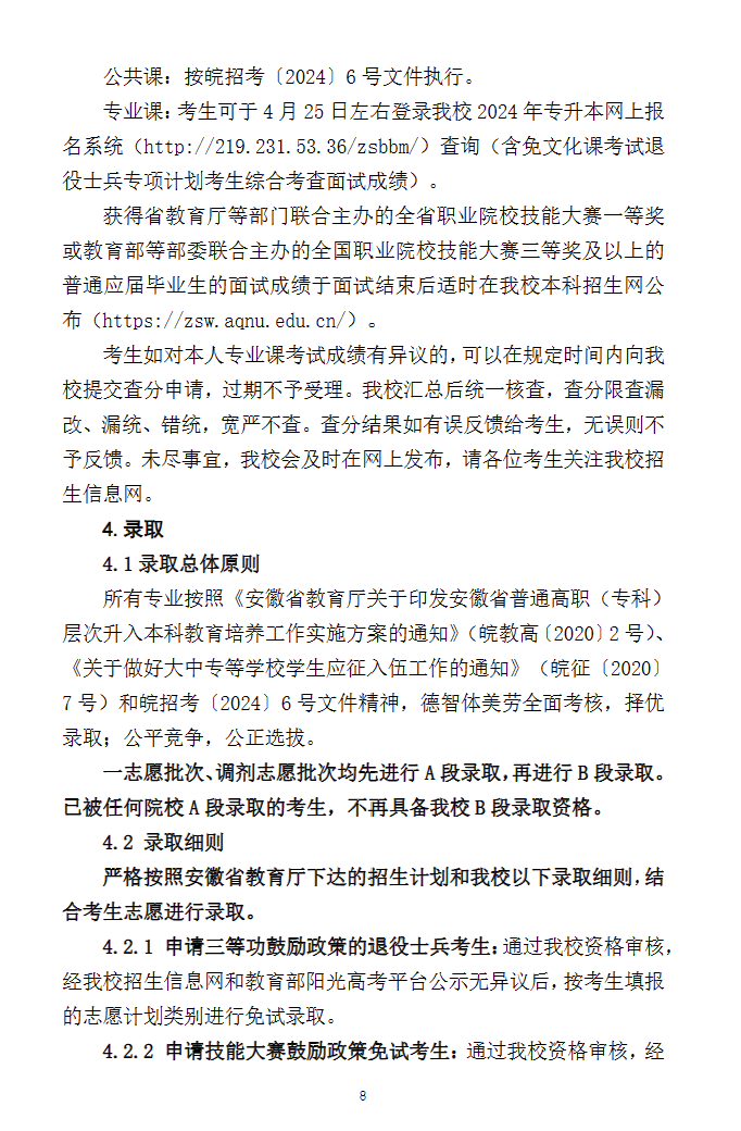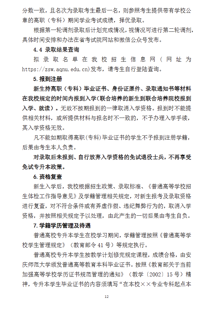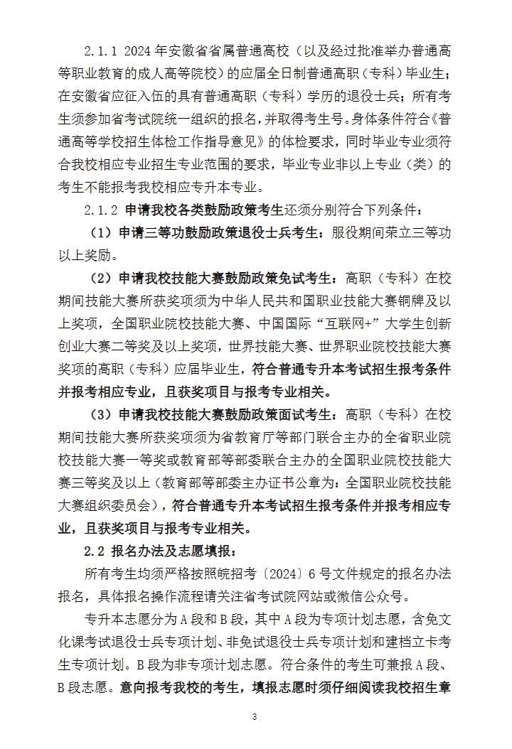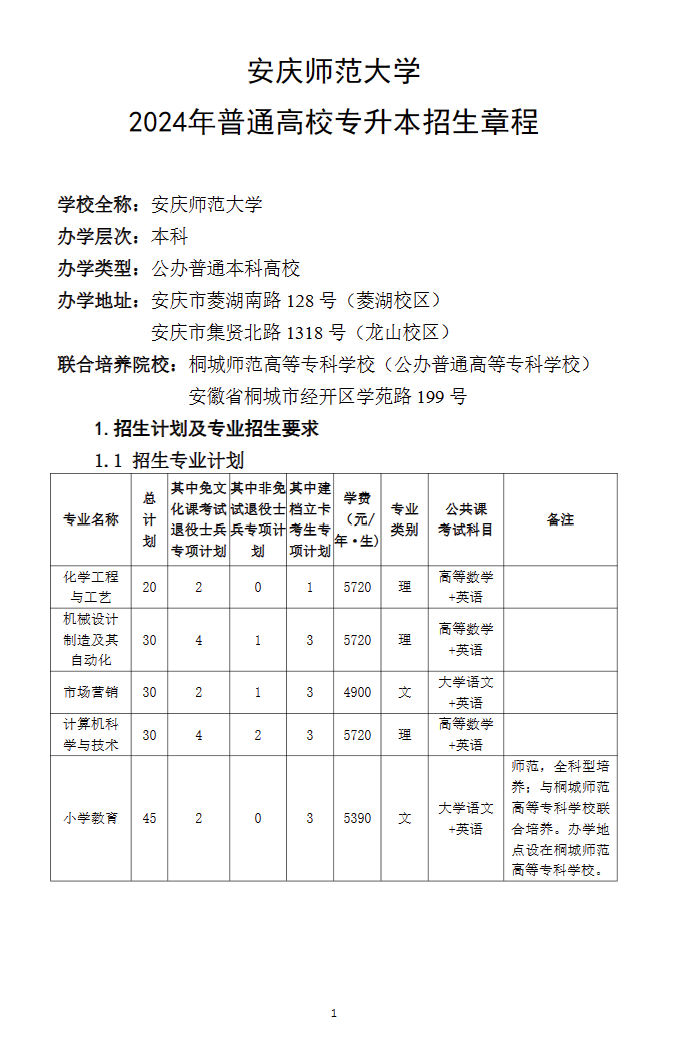 2024年安庆师范大学专升本招生章程已公布,招生章程中介绍了招生计划及专业招生要求、考试、录取、报到注册、资格复查、资助政策等重要内容。