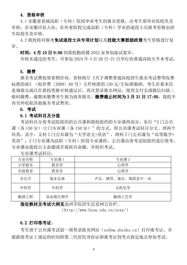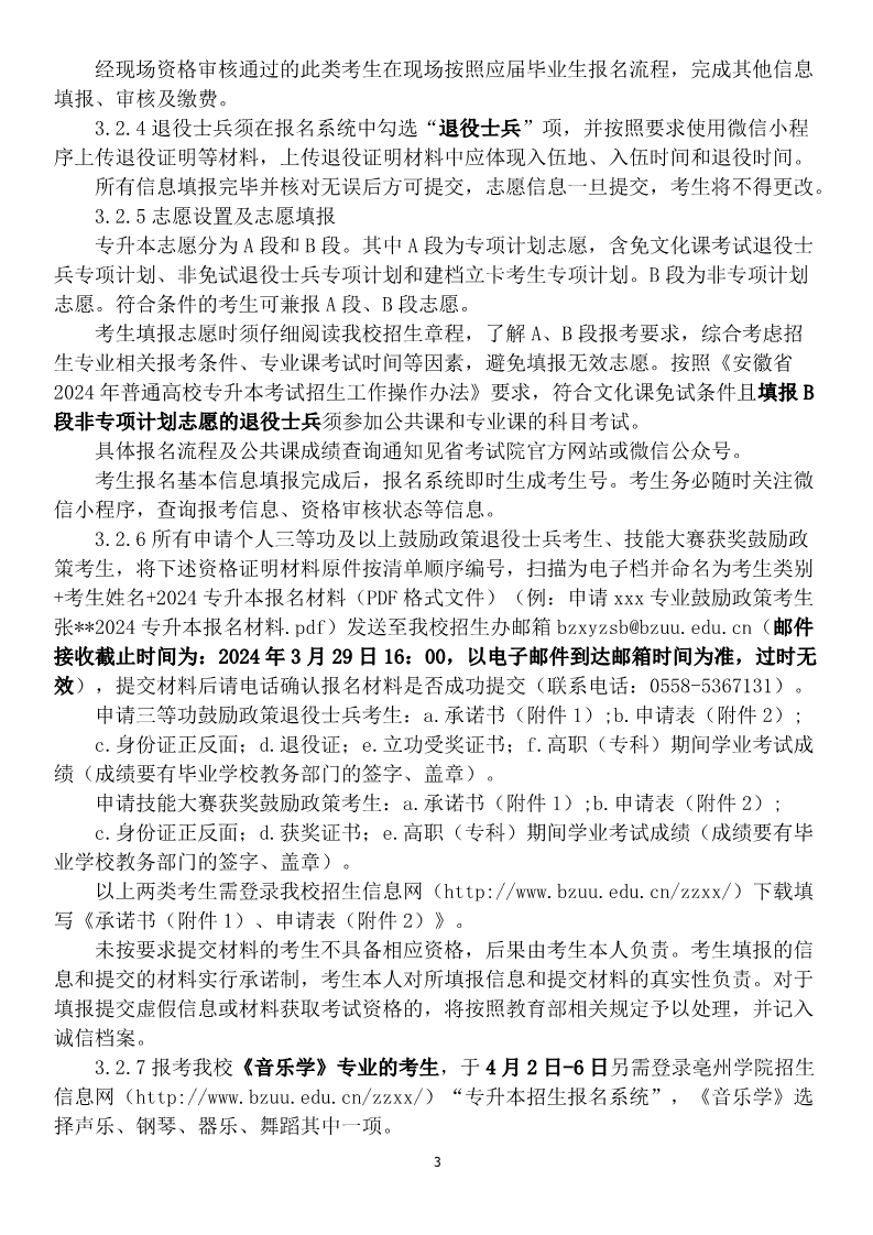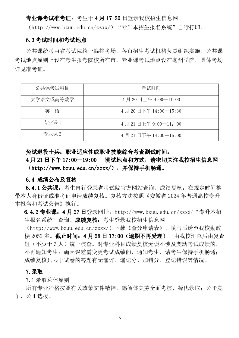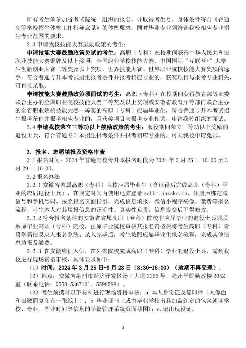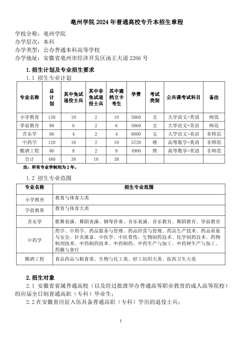 2024年亳州学院专升本招生章程已公布,招生章程中介绍了招生计划及专业招生要求、考试、录取、报到注册、资格复查、资助政策等重要内容。